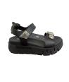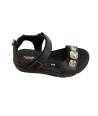 classico SANDALO laccio campanella, sportivo e formale; bellissimo NG in vera pelle nappata color nero portabile in ogni occasione, la sua comodità e femminilità e la bellissima senzazione della tomaia tubolare .avvolge il piede. particolare sono i tre brillanti antracite sopra la tomaia.